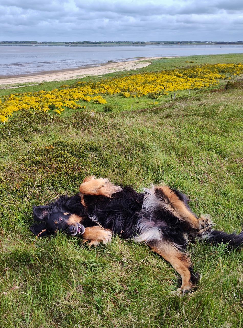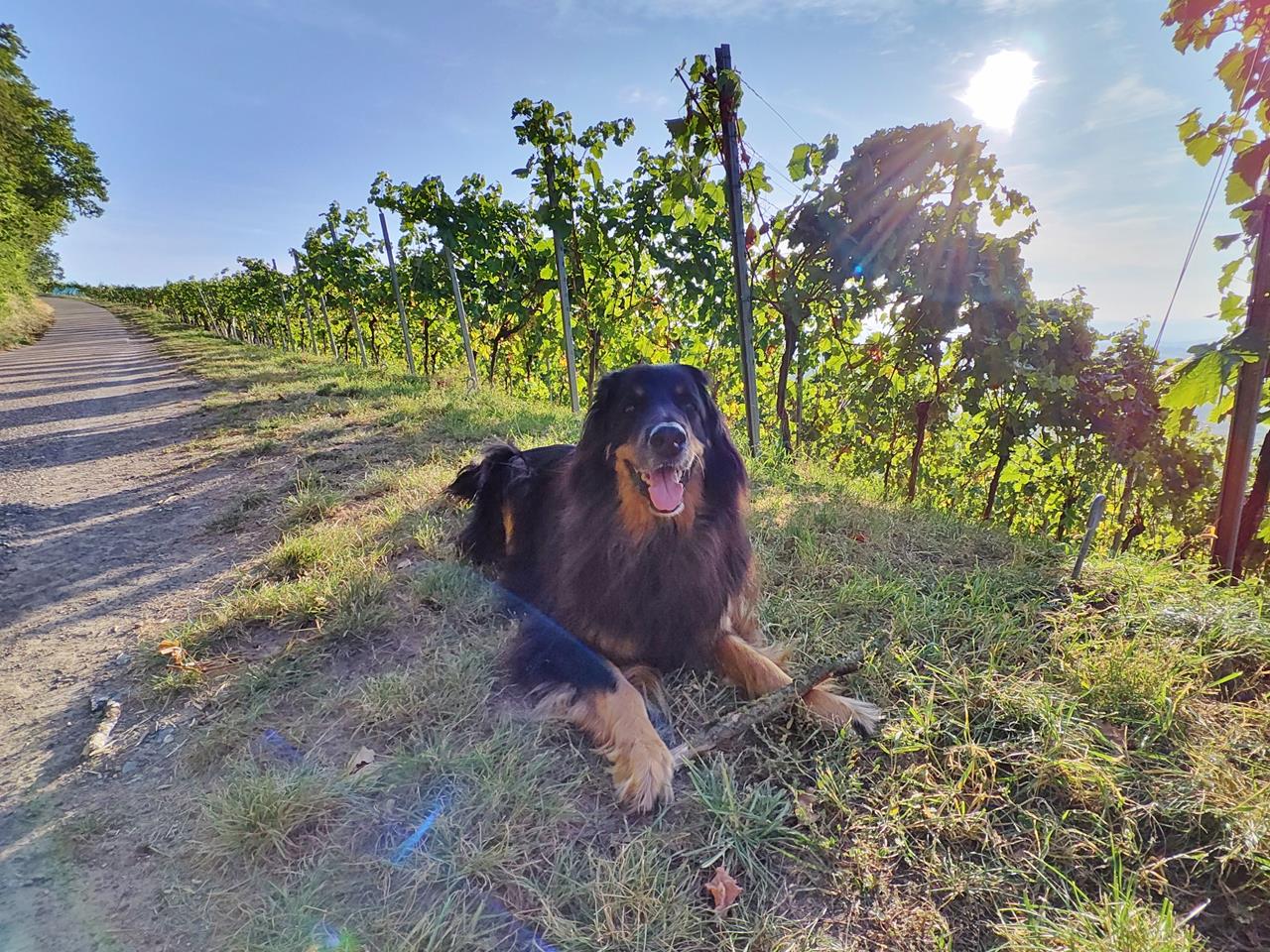 Doxi hat in den vergangenen 12 Monaten in den Hinterläufen deutlich an Kraft verloren. Auf gerader Strecke können wir noch so acht oder neun Kilometer mit ihr wandern, sofern es nicht zu heiß ist. Aber Treppensteigen, Bergauflaufen oder Rennen funktioniert nicht mehr gut. Das ist dem Alter geschuldet. Es geht allerdings schon wieder etwas besser seit einer großen Zahn-OP im Oktober. Davor muss sie eine Weile schlimme Zahnschmerzen gehabt haben.