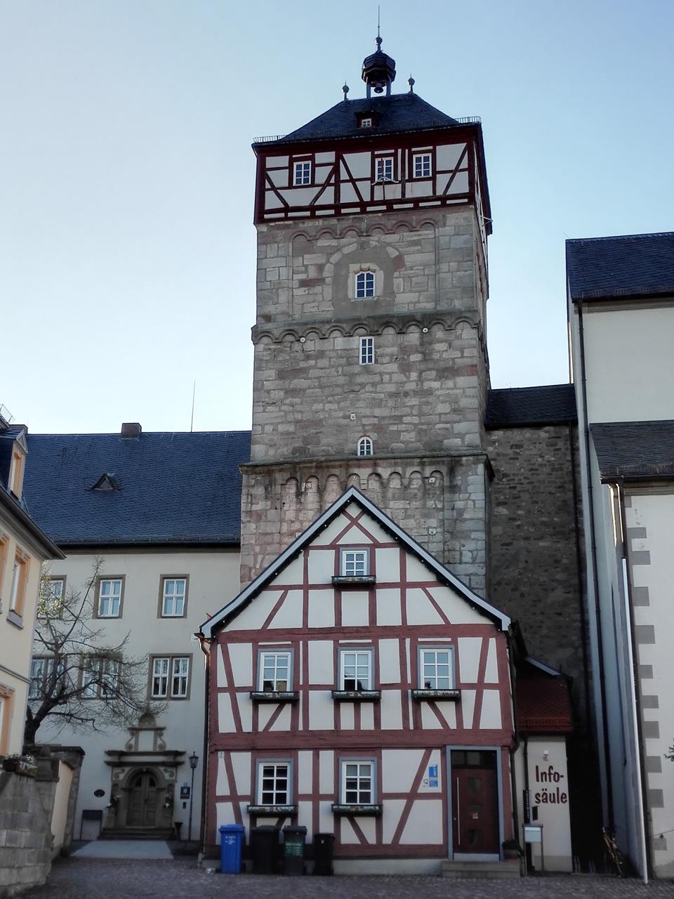 Von Riedenberg fahren wir am Nachmittag weiter in das rund 20 Kilometer entfernte Bischofsheim im bayerischen Teil der Rhön. Der ehemalige Verwaltungssitz des Würzburger Bistums ist 1270 zum ersten Mal genannt. Die Stadt erweist sich durch die Regelmäßigkeit ihrer Grundrissstruktur als eine Anlage des 13. Jahrhunderts.