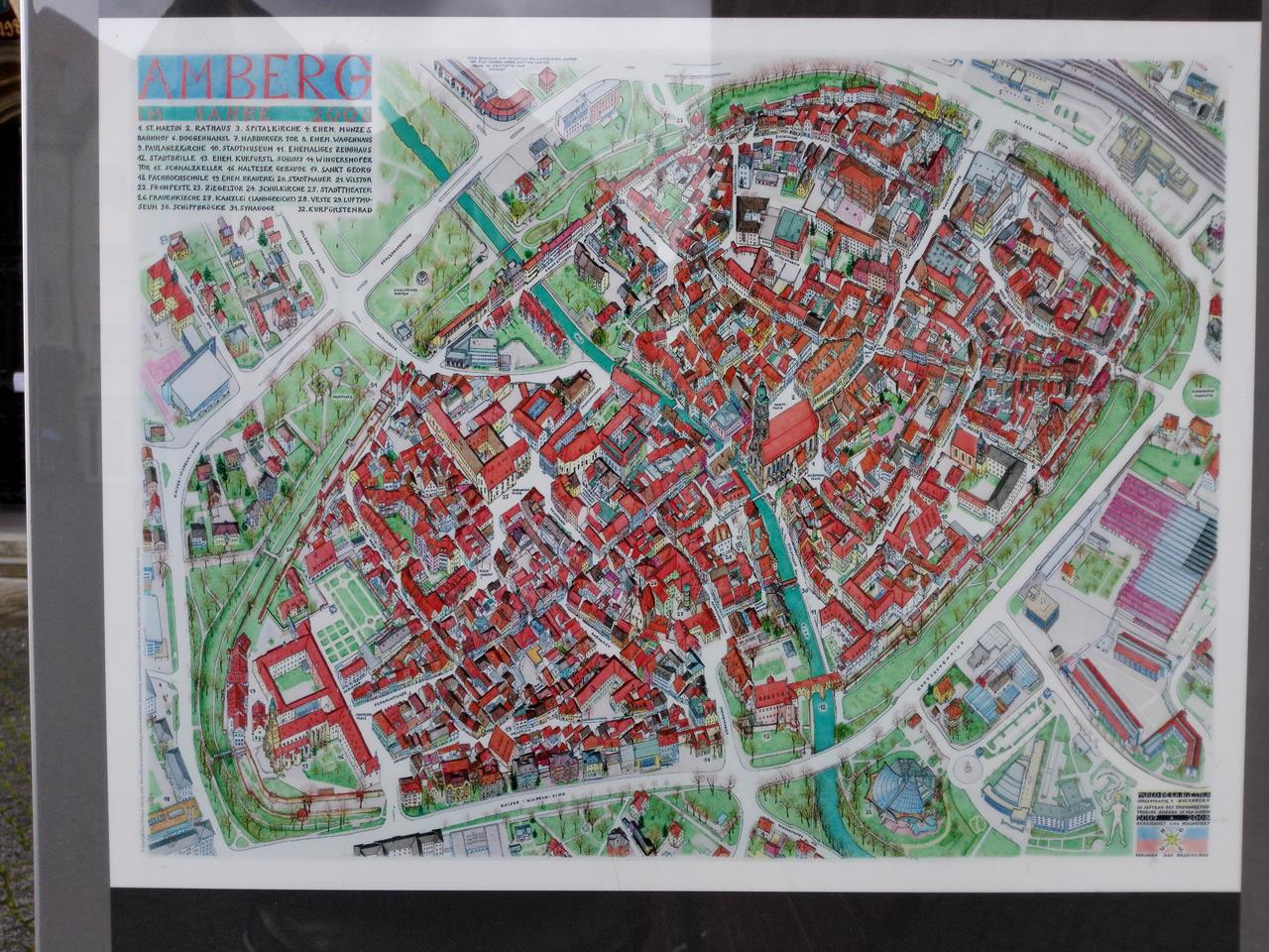 Infotafel mit Bild der historischen Altstadt von Amberg
