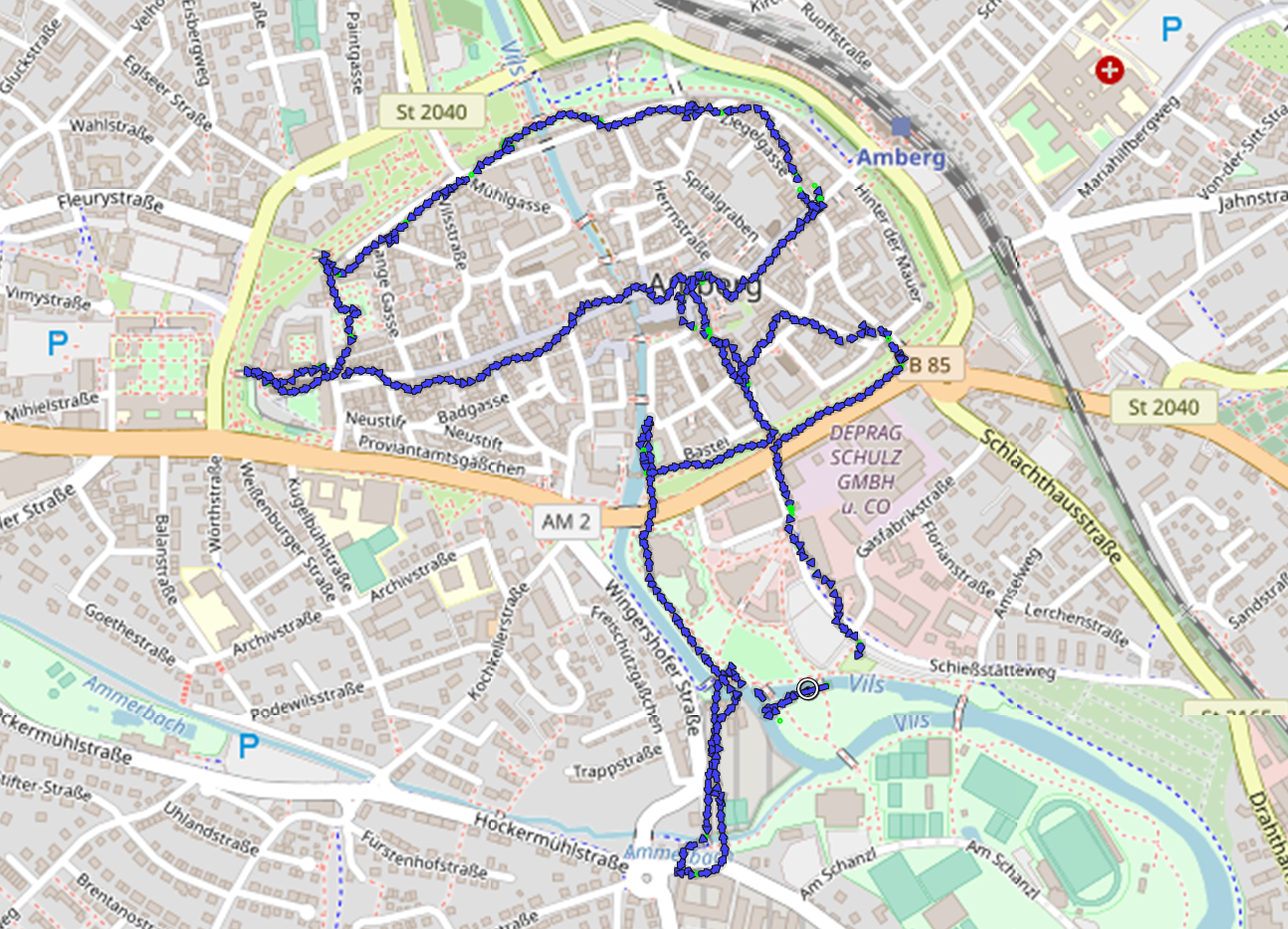 | Zusatzinfo: | Gut ausgestatteter und beliebter kostenloser Stellplatz in unmittelbarer Nähe zur historischen Altstadt. Großes Lob an die schöne Stadt Amberg! |