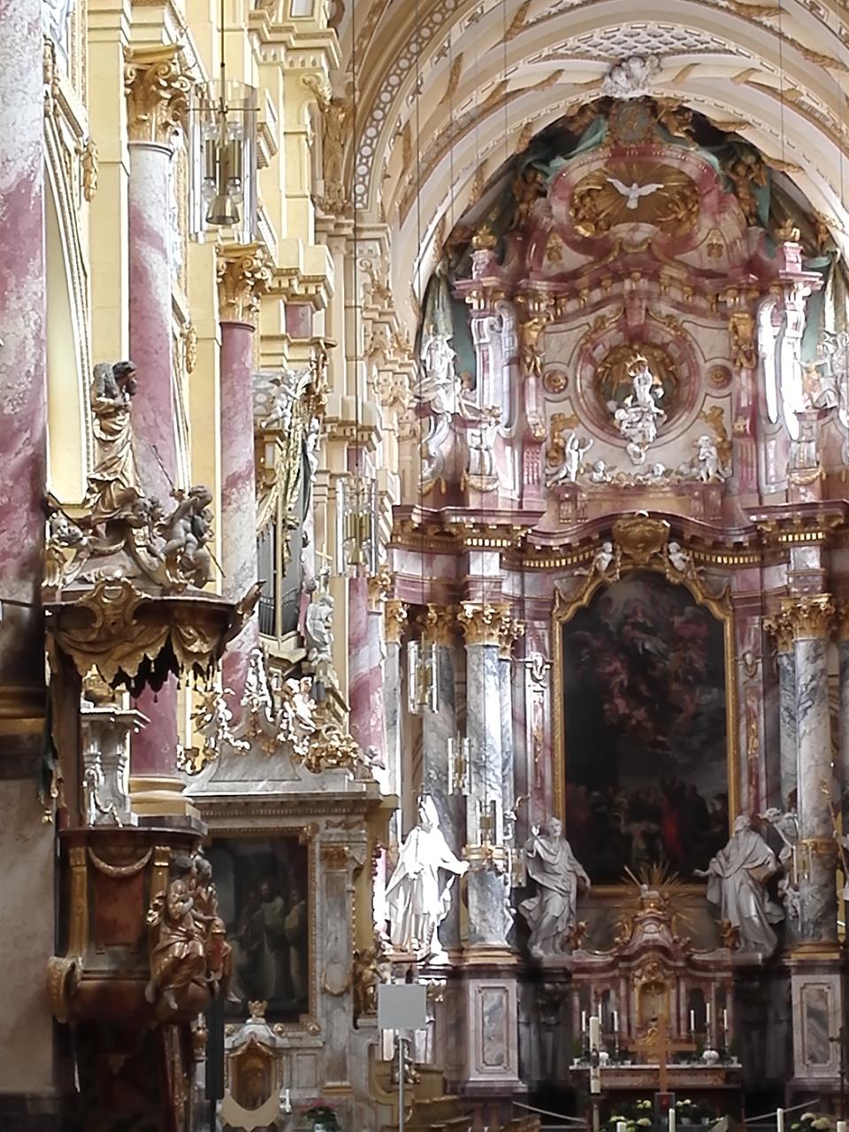 Nach wenigen Kilometern gelangen wir zurück nach Ebrach, wo wir die Kirche und ihr Umfeld besuchen. Die barocke Pracht ist wirklich beeindruckend. Von außen erwartet man das gar nicht. Ein schöner Abschluss für diese abwechslungsreiche Wanderung.