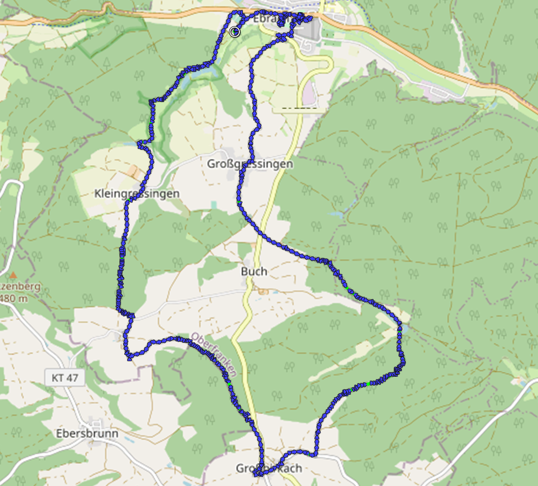 Heute haben wir eine schöne 20 Km-Runde um Ebrach gedreht. Der kleine Ort im Herzen des Steigerwalds gilt aufgrund seiner opulent mit Stuck und Heiligenfiguren ausgestatteten Michaelskapelle als barocke Perle des Steigerwalds.