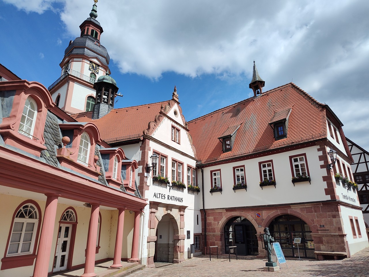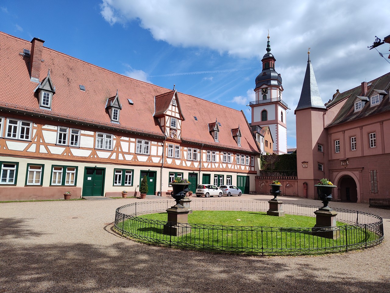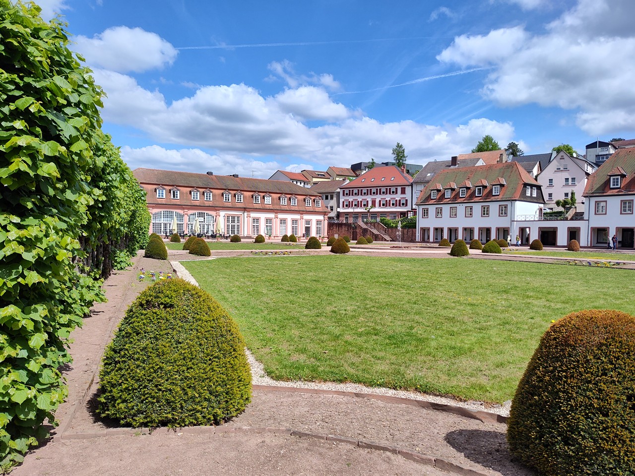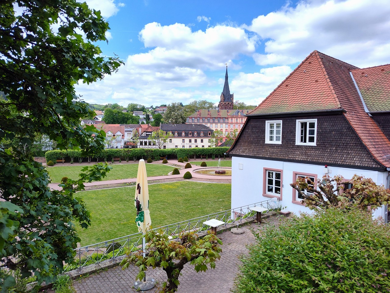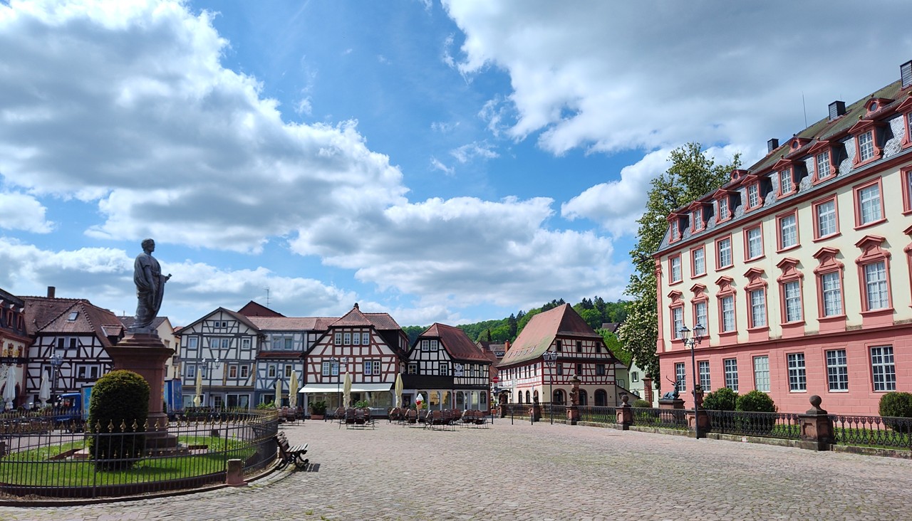 Denn der Ortskern entwickelte sich um eine frühere Wasserburg, die zwischen 1500 und 1530 in ein großzügiges und repräsentatives Renaissanceschloss umgebaut wurde. Bis heute residieren dort die Erben des Hauses Erbach-Erbach. Dazu gibt es eine Orangerie mit angeschlossenem Lustgarten unmittelbar am Fluss Mümling. So viel Prunk würde man hier mitten im Odenwald gar nicht erwarten. Ich jedenfalls nicht.