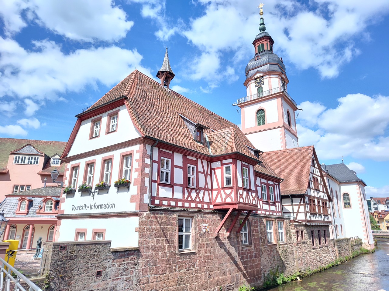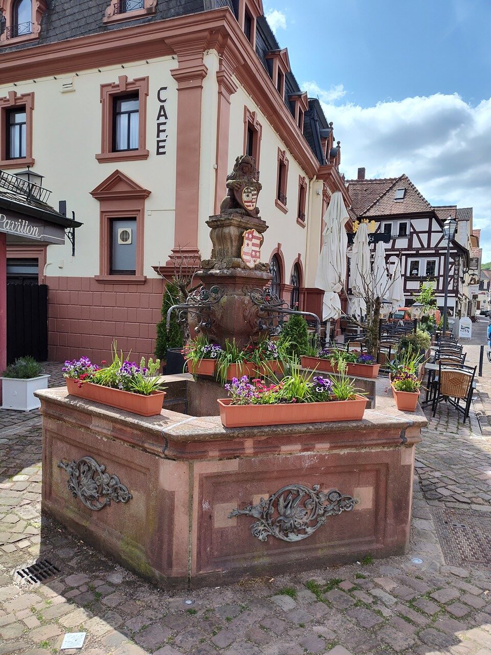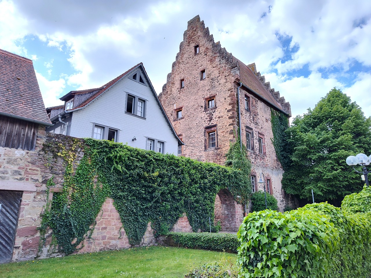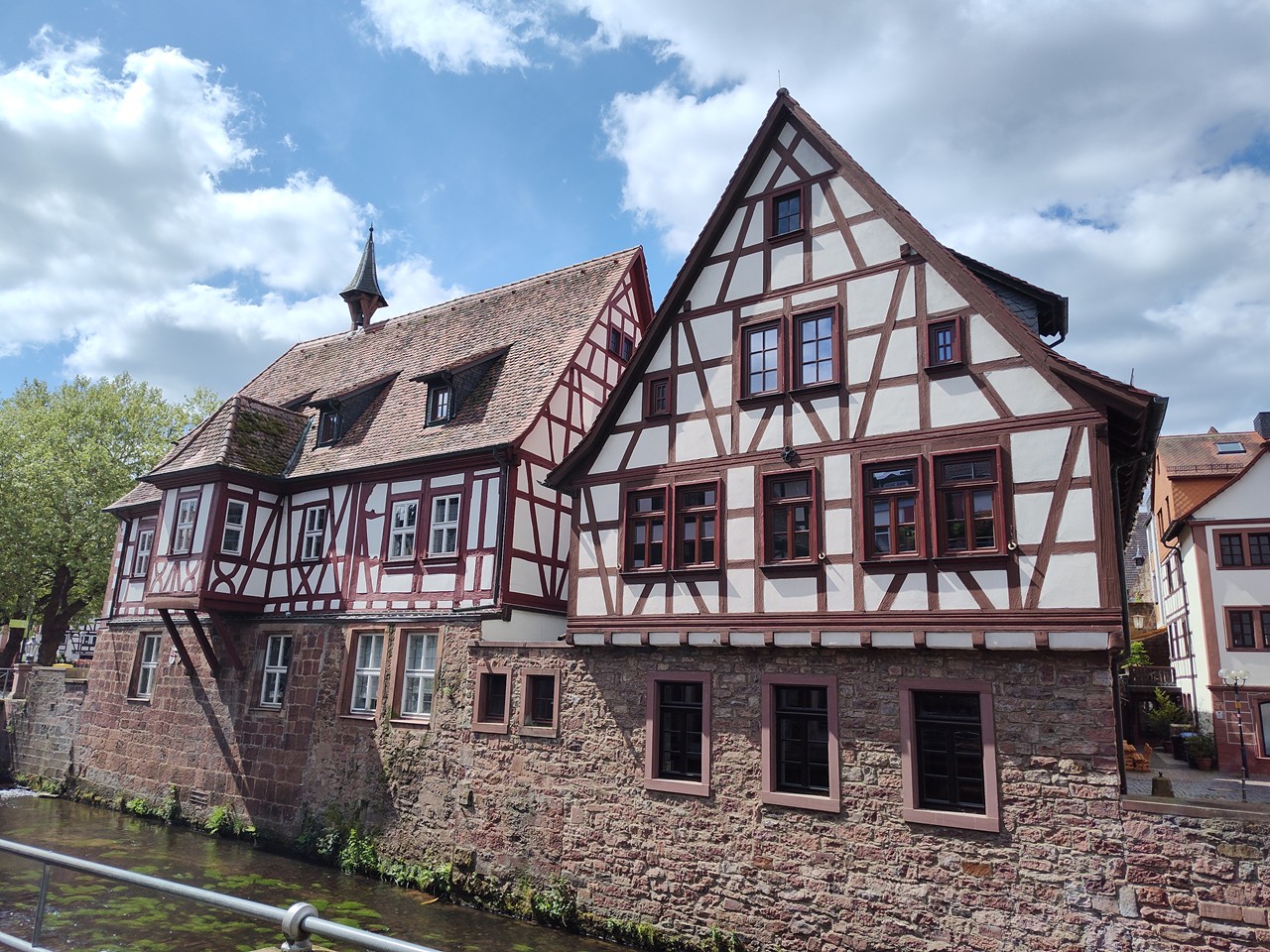 Denn der Ortskern entwickelte sich um eine frühere Wasserburg, die zwischen 1500 und 1530 in ein großzügiges und repräsentatives Renaissanceschloss umgebaut wurde. Bis heute residieren dort die Erben des Hauses Erbach-Erbach. Dazu gibt es eine Orangerie mit angeschlossenem Lustgarten unmittelbar am Fluss Mümling. So viel Prunk würde man hier mitten im Odenwald gar nicht erwarten. Ich jedenfalls nicht.