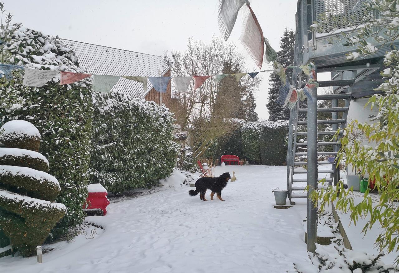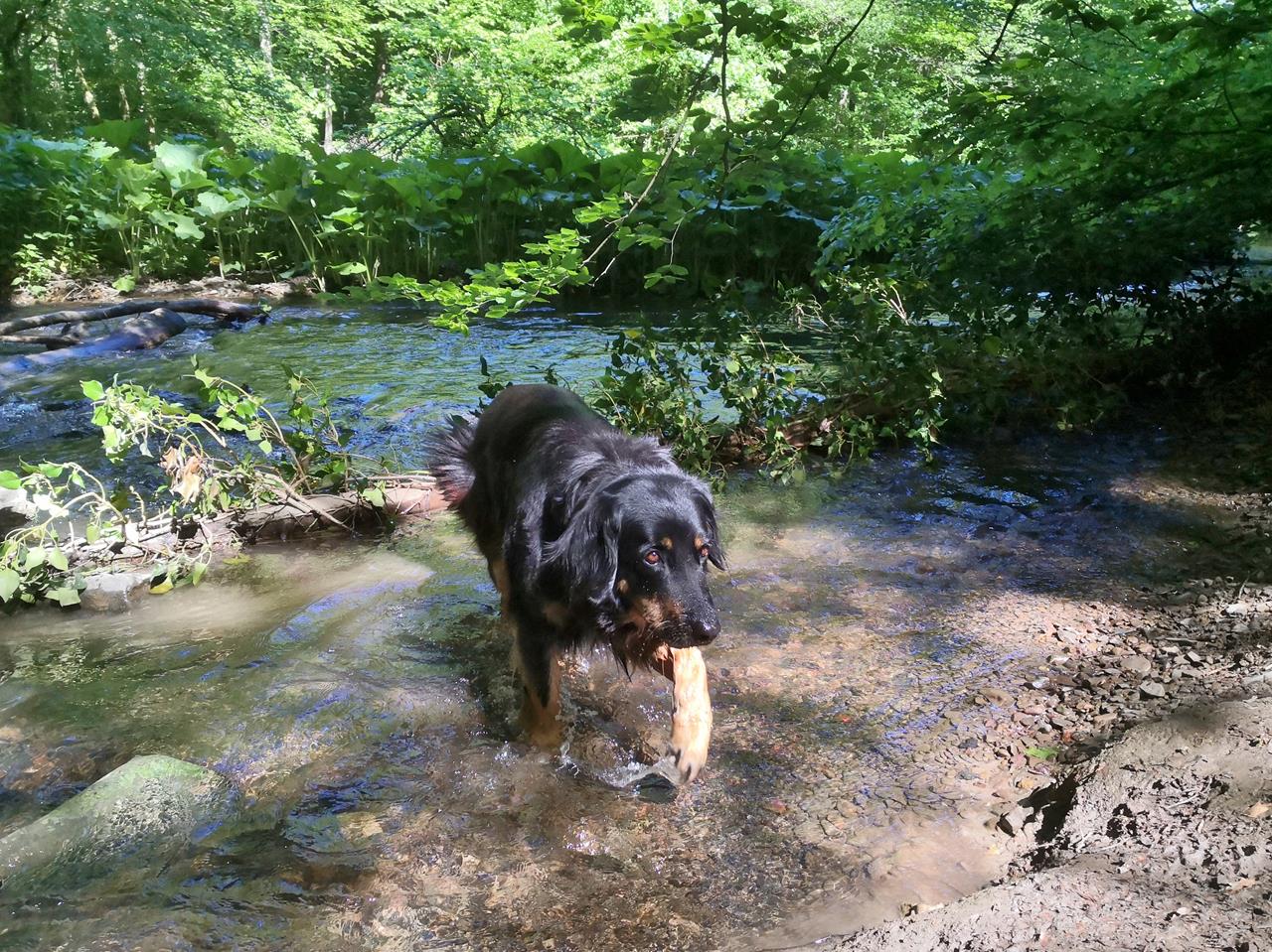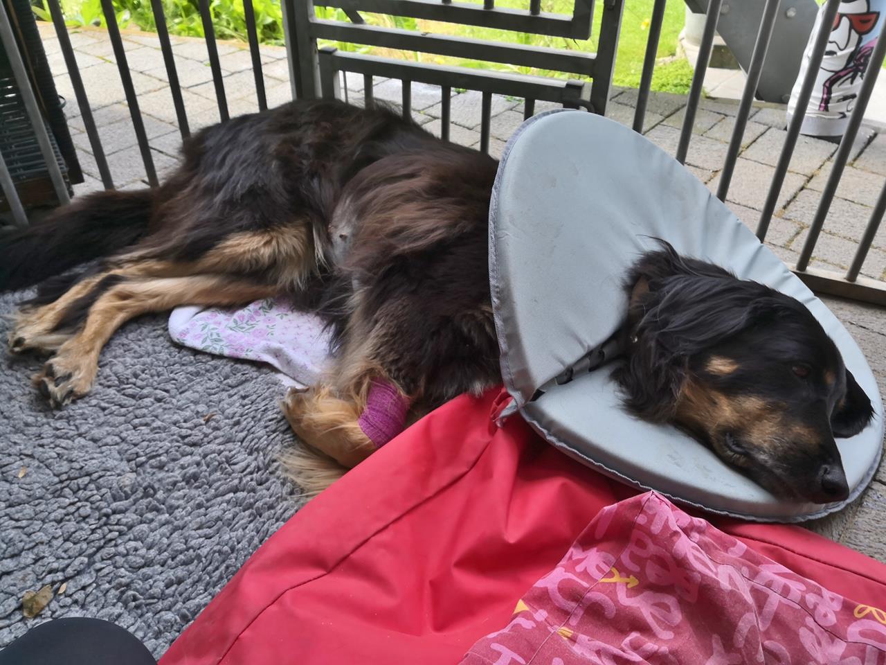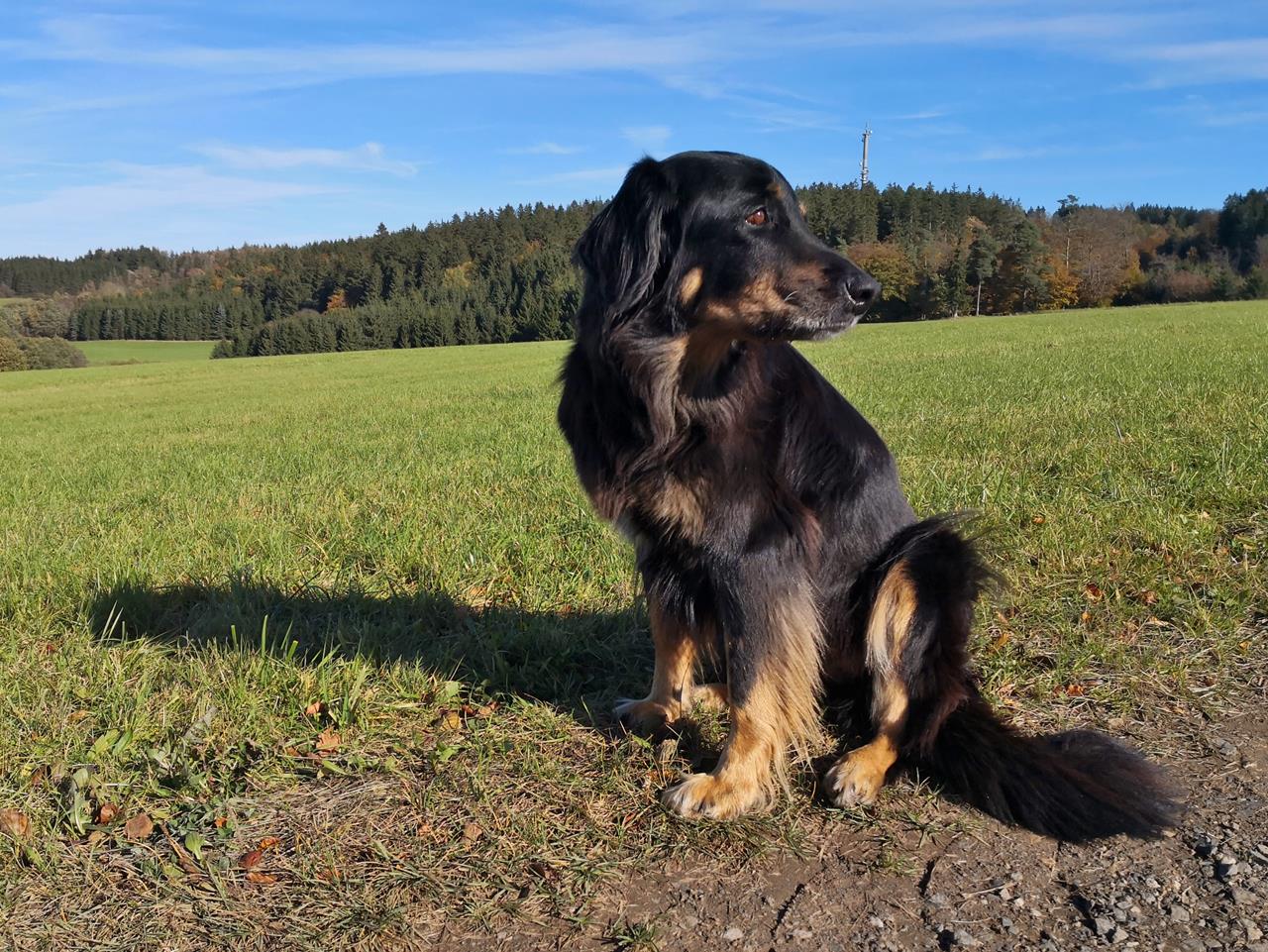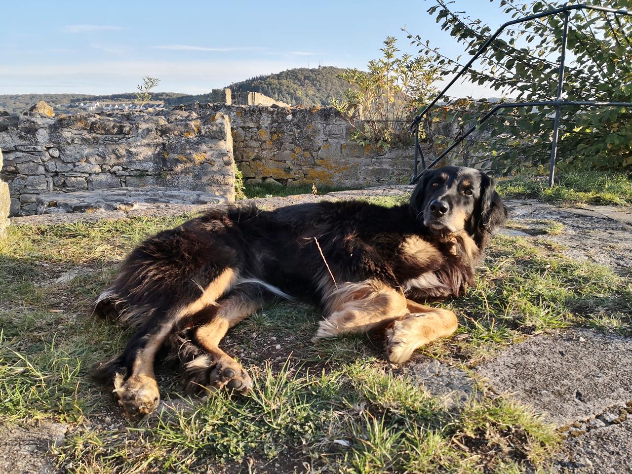 Doxi hat in den vergangenen 12 Monaten in den Hinterläufen deutlich an Kraft verloren. Auf gerader Strecke können wir noch so acht oder neun Kilometer mit ihr wandern, sofern es nicht zu heiß ist. Aber Treppensteigen, Bergauflaufen oder Rennen funktioniert nicht mehr gut. Das ist dem Alter geschuldet. Es geht allerdings schon wieder etwas besser seit einer großen Zahn-OP im Oktober. Davor muss sie eine Weile schlimme Zahnschmerzen gehabt haben.