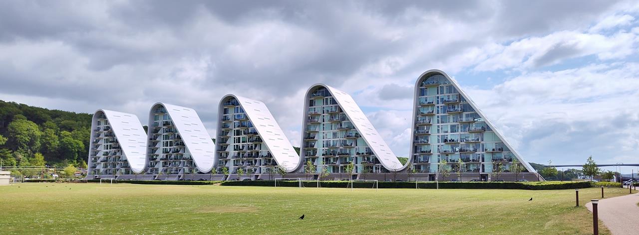 Dort liegt die Stadt Fredericia mit dem größten Güterhafen in Dänemark. Die großen Pötte im Hafen kann man auch aus der Ferne gut erkennen.