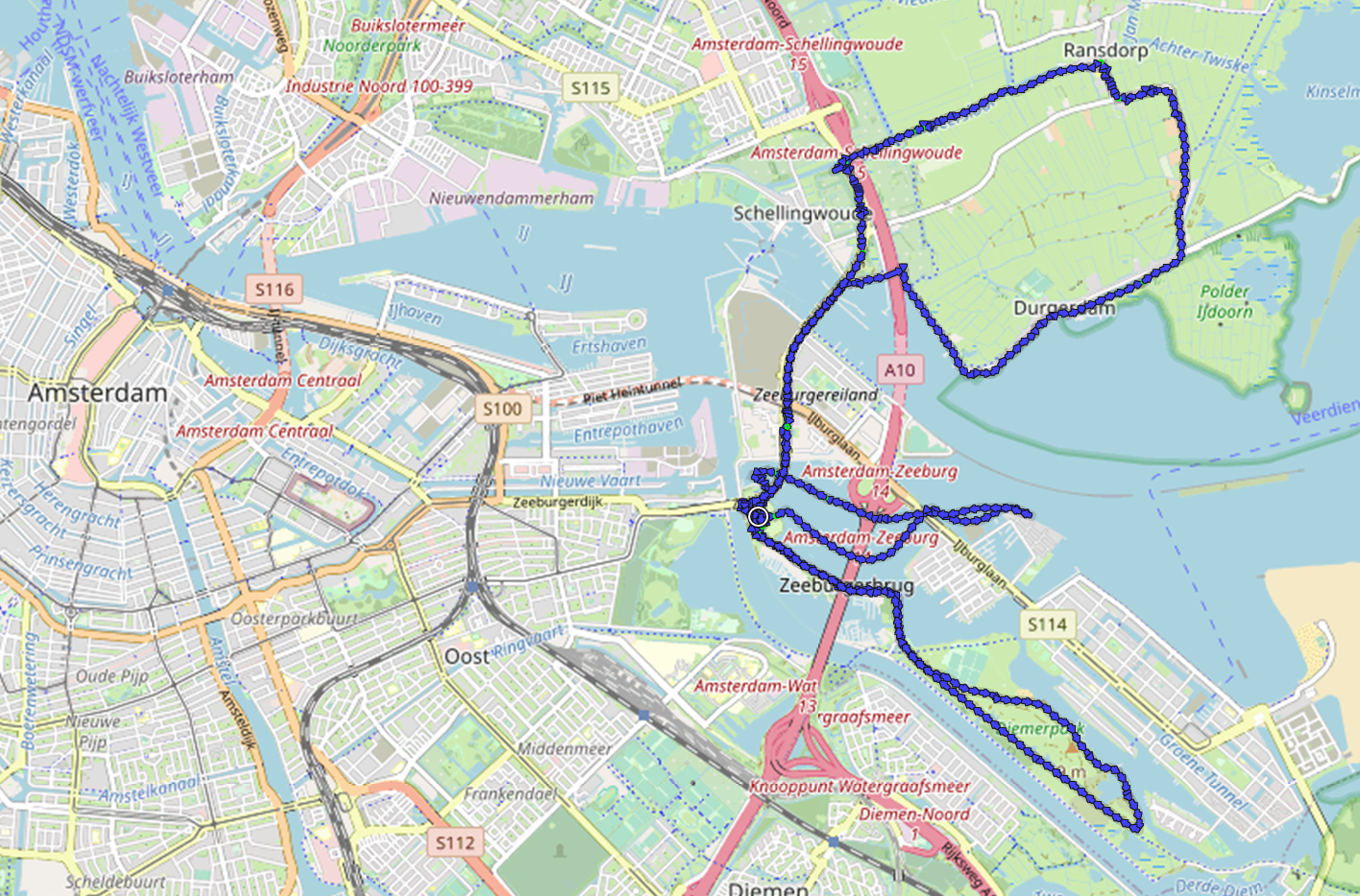 Karte unserer Wanderungn vom Campingplatz am Ostrand von Amsterdam