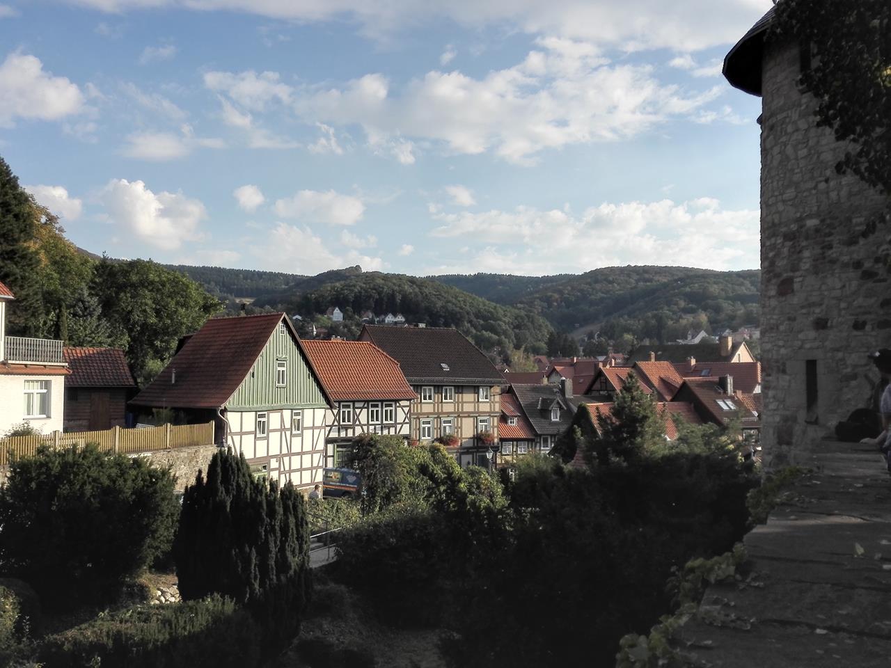 Mit Doxi erkunde ich zunächst die sehenswerte Altstadt. Anschließend steigen wir zum Schloss Wernigerode oberhalb der Stadt auf. Von dort hat man einen wunderbaren Blick in den Harz und hinüber zum Brocken.