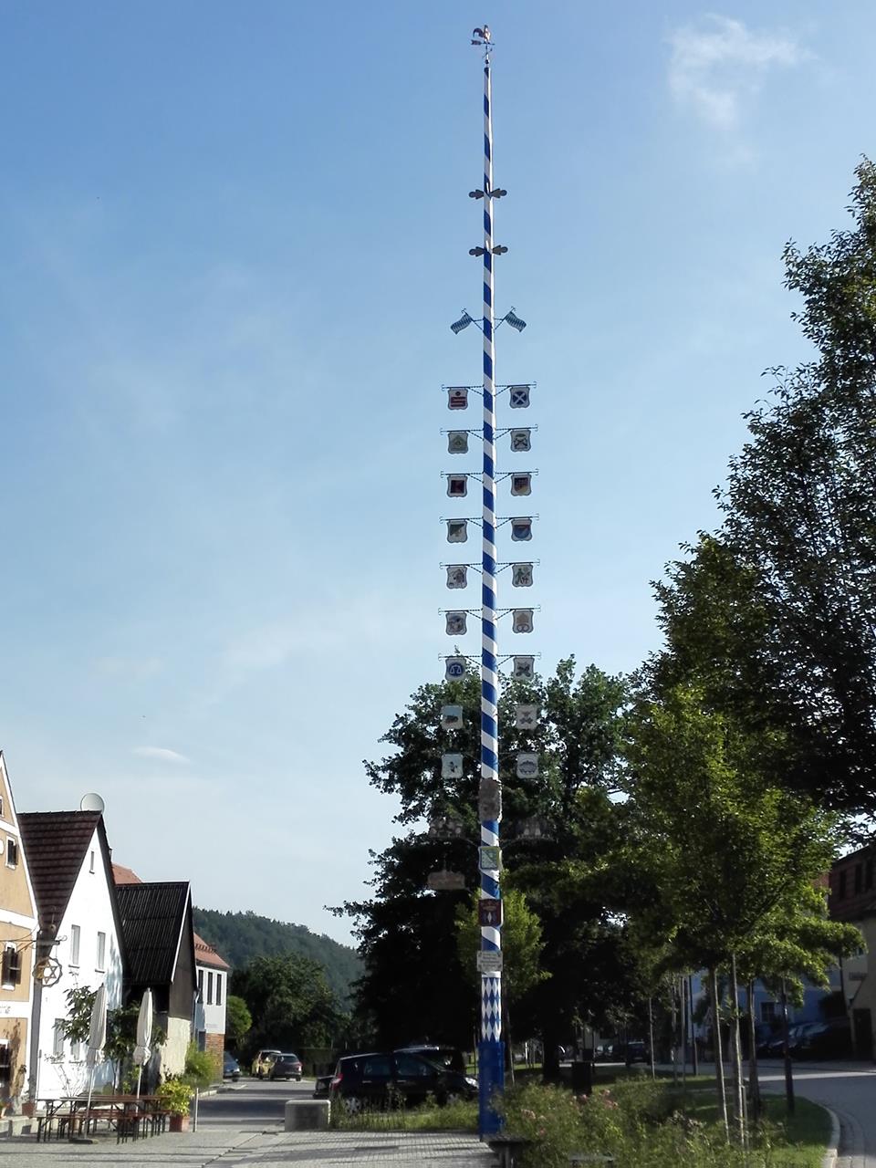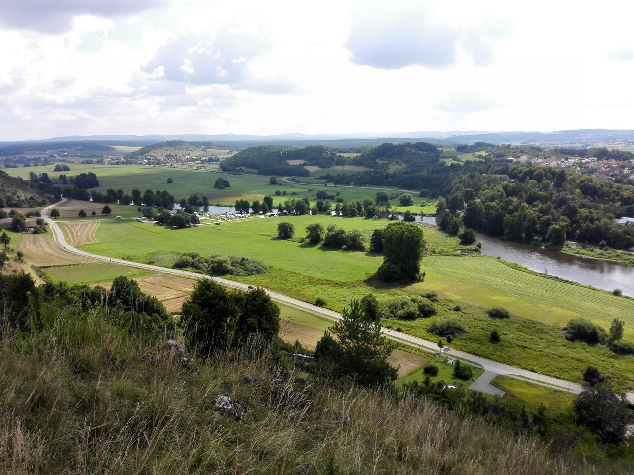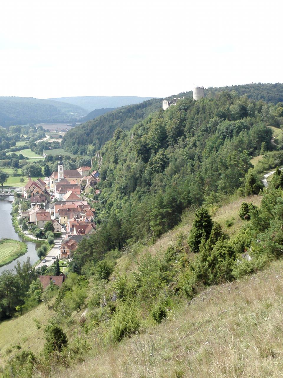 Der kleine Ort liegt rund 25 Kilometer nördlich von Regensburg. Die Häuser der Altstadt schmiegen sich eng an den „Schlossberg“, auf dessen Spitze sich die Ruinen der alten Burg Kallmünz befinden. Die Burg stellt eine markante Landmarke im Naabtal dar.Von Kallmünz aus wandere ich mit Doxi durch das malerische Vilstal. Wir folgen dabei dem Jurasteig entlang steiler Abbrüche der Kalkfelsen, die der Fluss in das Tal gegraben hat.