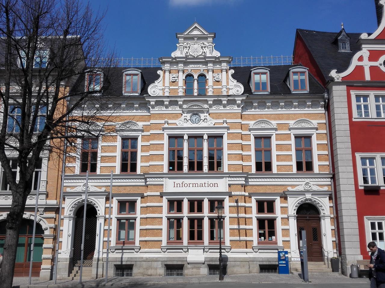 Die Tourist-Info neben dem Rathaus auf dem Marktplatz