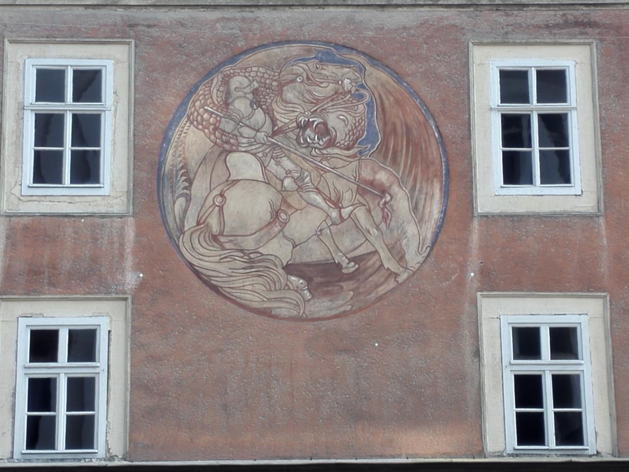 Motiv an einem Wohn- und Geschäftshaus