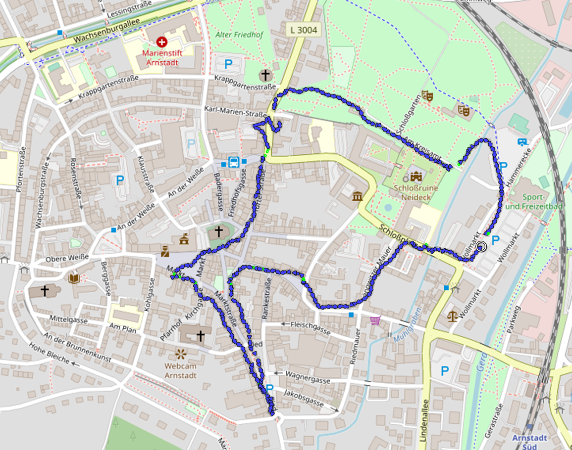 Karte unseres Stadtspaziergangs durch Arnstadt